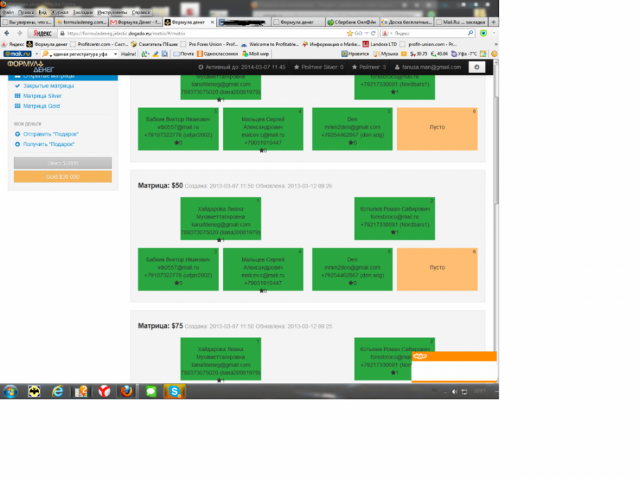 6. Любая матрица у любого участника рано или поздно закроется. То есть любой вложивший 32000 получит 128000. Когда? Зависит в первую очередь от вашей активности. Можно вообще ничего не делать, и тогда матрица закроется от "переливов" сверху, но на это может уйти например месяц. Или можно быстро привлечь пару-тройку человек, которые в свою очередь тоже быстро привлекут пару-тройку человек, и тогда ваша матрица может закрыться даже за сутки. Даже за час можно))) Короче - зависит от активности, вашей и ваших привлечённых. Но, повторяю, даже если вы вообще никого не привлечёте - ваша матрица всё равно закроется, и вы получите в 4 раза больше вложенного. Тем более, что мы работаем в команде, и "подгоняем" друг-другу людей.